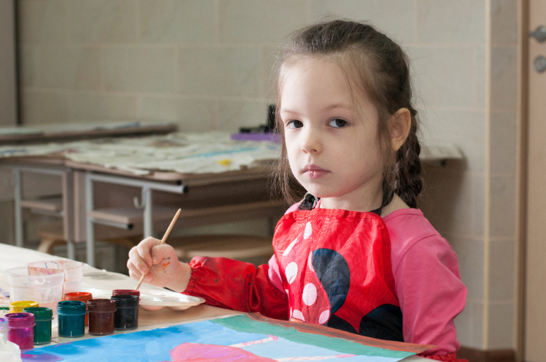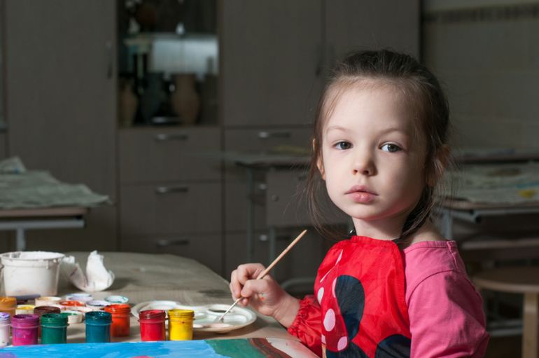 ФотоСнимала Алису на рисовании для учебы с разным светом.