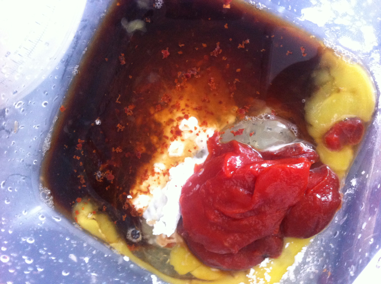 1) Делаем соус. Все на глаз, хотя на него будет больно, поэтому в миску: