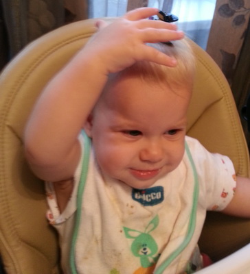 Третий день Софи очень активно интересуется моей заколкой-крабиком)