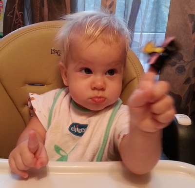 - Фишка третья. Мы когда едим, мы - хомяк. Т.е. все запихиваем за щеки, про запас. Вдруг больше не покормят)) Иногда помимо того, что можно проживать, попадаются нежевательные элементы типа яблочной кожуры. Я их обычно выковыриваю пальцем. Так теперь София, как только чувствует у себя во рту эти нежевательные элементы, берет мой палец и запихивает себе в рот, типа "Выковыривай, мать" ))