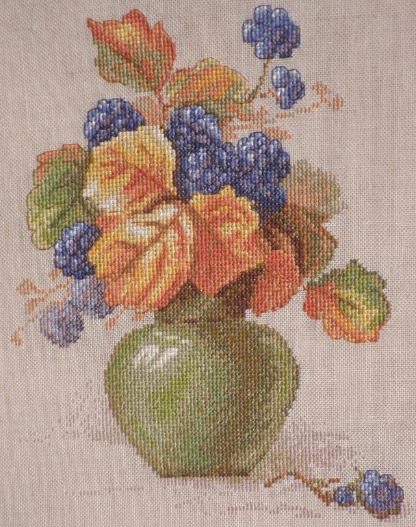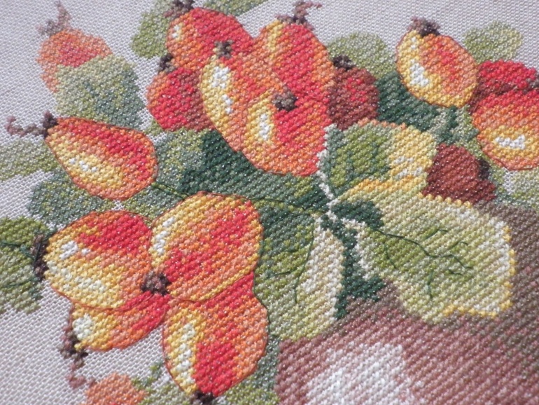 Размер 15*20 см- крошка,но в работе используется почти 30 оттенков мулине!!! Но зато какими живописными получились листочки)))