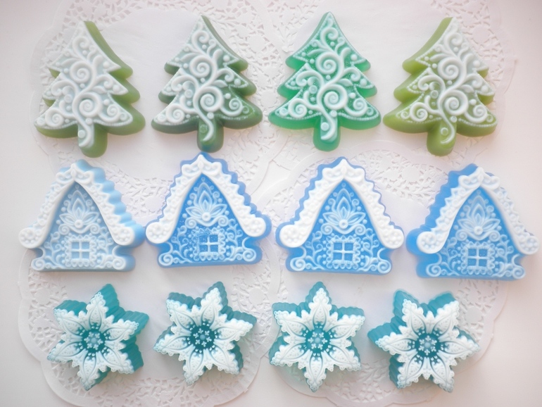 Кстати, ёлочки- новинка в моём мыльном ассортименте)