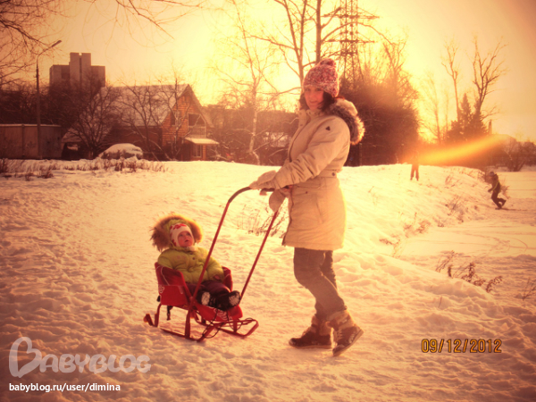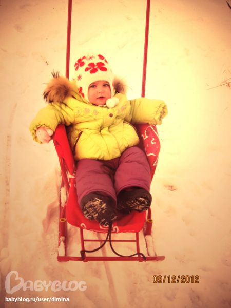 Ладно, а теперь о приятном! Вчера выбрались на 15 минут на санках около дома.