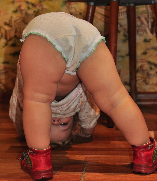 Вообще, девочки отлично взаимодействуют. Лянка зовет Сеню в "домик" - под стол, пытается мячик с ней катать, вместе ползают. Скоро пойдет моя маленькая и вообще станет проще)