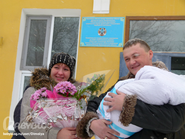 Когда мы выписывались, стояли на улице всей толпой, из вне откуда упал сугроб на меня , Ромочку, и на Диму (на мужа). Причем когда стояли на улице у Ромы одеялко было открыто где голова, в момент когда я закрывала уголок, свалился тот самый сугроб!!!! к чему бы это))))