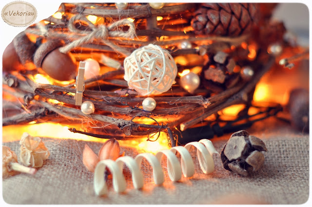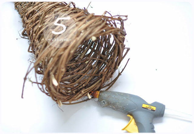 Начинаем с того, что сплетаем из лозы кольцо. Если не получается сплести ровное округлость, то можно для начала сделать кольцо из проволоки, а затем оплести его лозой.