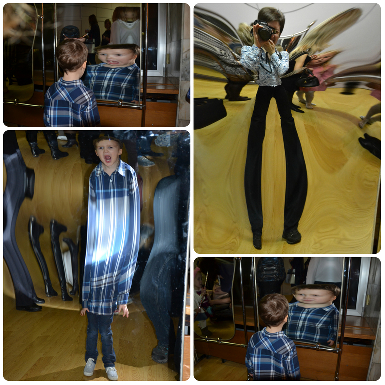 А это наверху, пока мы ждали свои фотки (очередь там, кстати, нефиговая - конечно, забесплатно-то), кривлялись перед кривыми зеркалами)) Мелкий ржал)) А мой автопортрет - походу, лучшее фото меня за последние пару лет))))