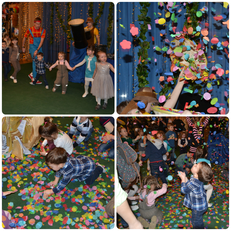 Кстати, в антракте тоже в фойе всякая движуха, мелкий даже в этот раз соизводил в ней поучаствовать, особенно когда конфетти накидали)))
