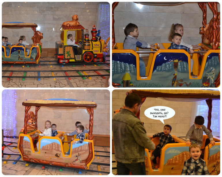 Только мы зашли внутрь, дети, не раздевшись, ломанулись вперед с воплями "Паровоооозиииик!!!!" Пришлось ловить, раздевать и катать за 150 руб.