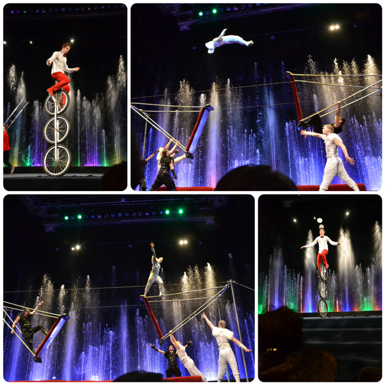 Мне больше всего понравились летающие мужики на качелях, мальчик на трехэтажном велосипеде, который умудрялся на нем еще ногой себе на голову закидывать чашки и блюдца)))