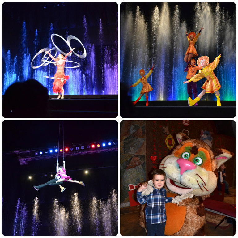 В прошлые выходные мы с мелким и нашими друзьями ходили в цирк танцующих фонтанов . Думала, честно говоря, что детям нашим рановато, но поскольку билеты нам достались бесплатно, решили сходить, да я и сама с удовольствием посмотрела бы.