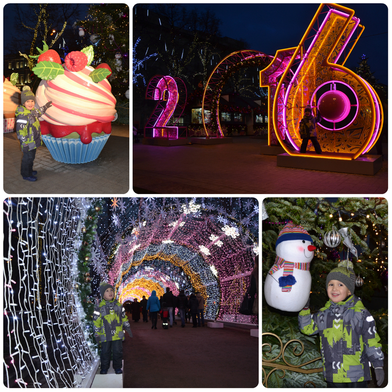 На улице уже стемнело, начала включаться иллюминация, мы как раз дошли до светящегося тоннеля (очень красивый, фото не передает), ну и просто прогулялись до конца бульвара и повернули назад.