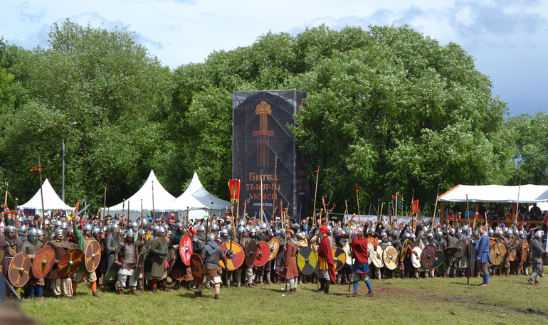 После всадников в бой вступают пешие воины. Масштаб, конечно, поражает!