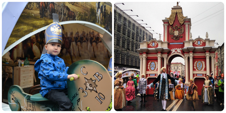 По всей улице были установлены 10-метровые инсталляции в виде Триумфальных арок, везде была костюмированная анимация, проходили всякие мастерклассы и куча всякой развлекухи.