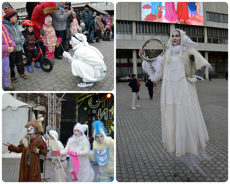 В течение дня были небольшие выступления уличного театра. Не скажу, что в восторге от постановки, но мелкий смотрел с интересом. Правда, участвовать в хороводах с целью приманивания зимы отказался наотрез.