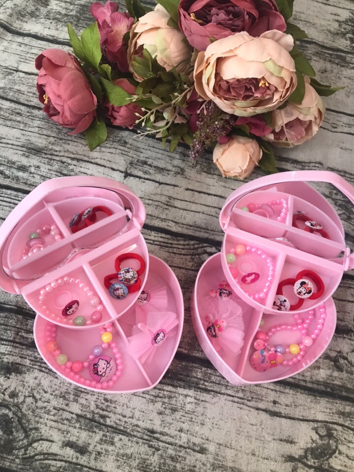 Шкатулка 2 отделения с зеркалом, браслет, бусы, заколочки, резинки, кольцо