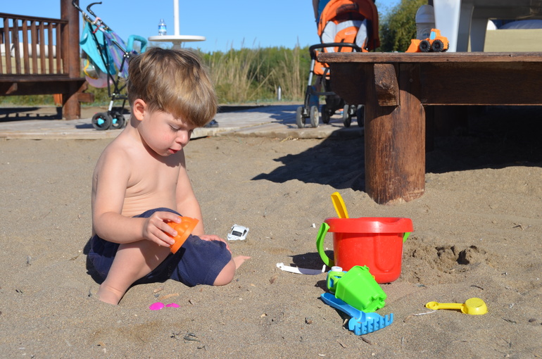 На пляже есть детская площадка: