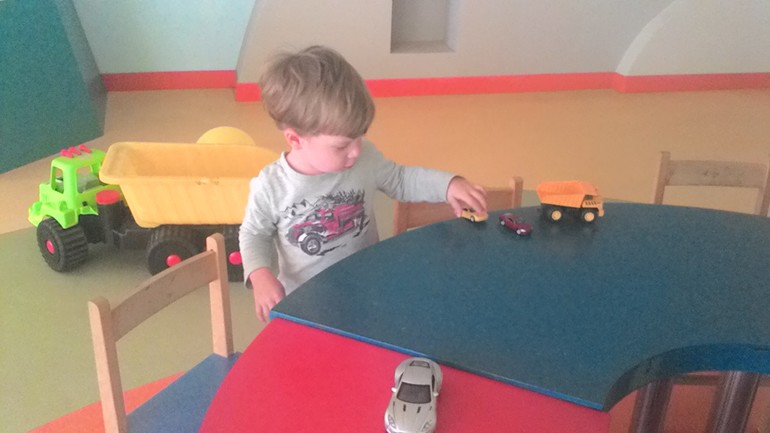 Есть две детских игровых площадки, две игровых комнаты, для детей 0-3 лет, и для более старших. В миниклуб один раз ходили, там работают русские девушки, берут деток от 3-х лет. Антошка был один, поэтому поиграл, похозяйничал там.