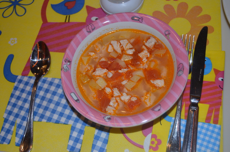 Для маленьких пассажиров есть вкусные супчики на обед и ужин: