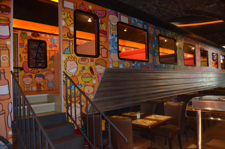 Есть отдельно детский ресторанчик в виде вагончика: