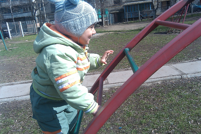 это дело Максим очень любит, взбирается по лестничке