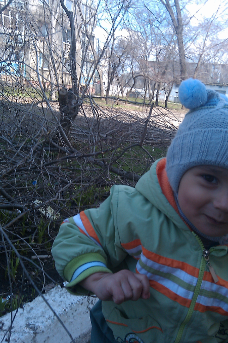 отсюда битый час не могла его забрать домой, Очень любит с палочками играть, а у нас во дворе как раз недавно деревья подрезали, и этого добра хватает.