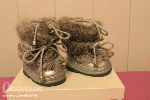 Почти новые унтики Миссури серебро,опушка кролик.Размер 19 (на подошве18-20) Одели раза 3,и то в коляске.Очень теплые и потрясающе красивые сапожки! Ваша малышка не останется незамеченой!!! Фото делала при плохом освещении,не видно всей красоты.Продаю за 2000р,новые гораздо дороже))) Возможна отправка почтой.