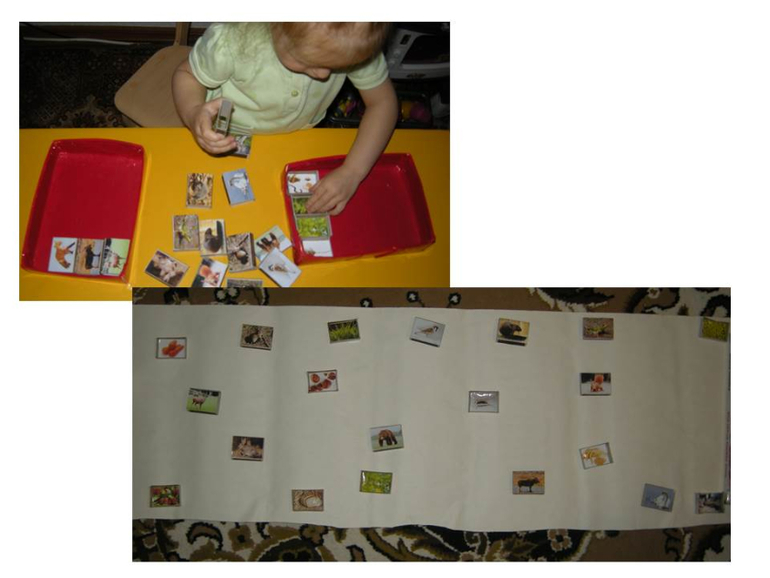 Потом Вика получила занятие разобрать еду животных в одну сторону, а животных в другую. Справилась, мы разложили вместе по обоям все в хаотичном порядке.