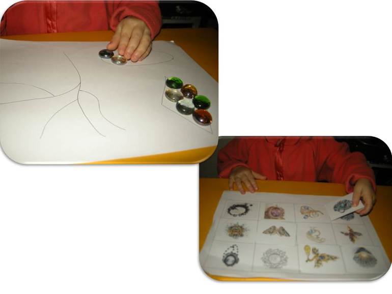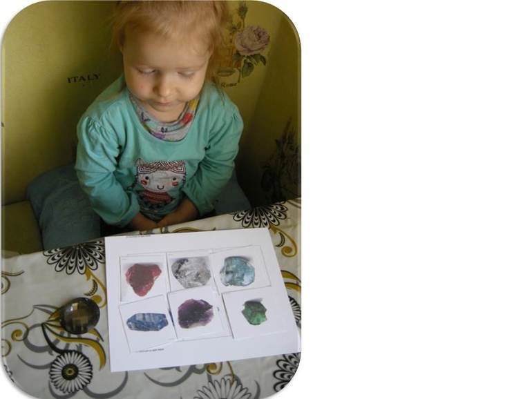 Поговорили, что брошь носят на груди и обычно в ней есть камешки, что бывают драгоценные и нет. Сделали лото камней!