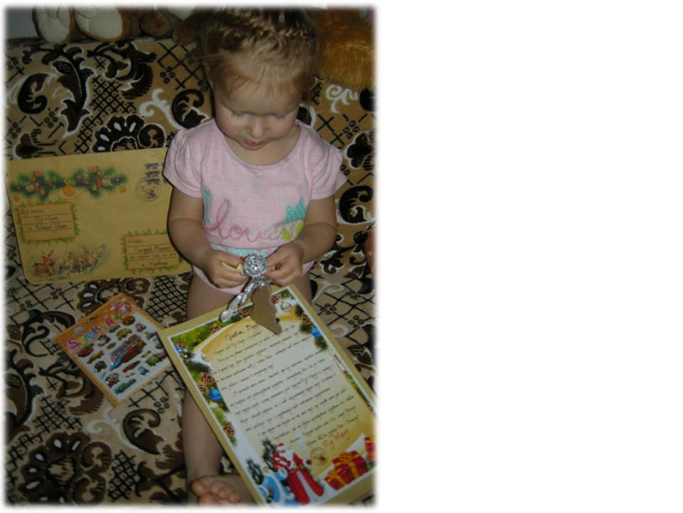 После сна мы обнаружили письмо от Деда Мороза в ящике почтовом, занялись его распаковыванием