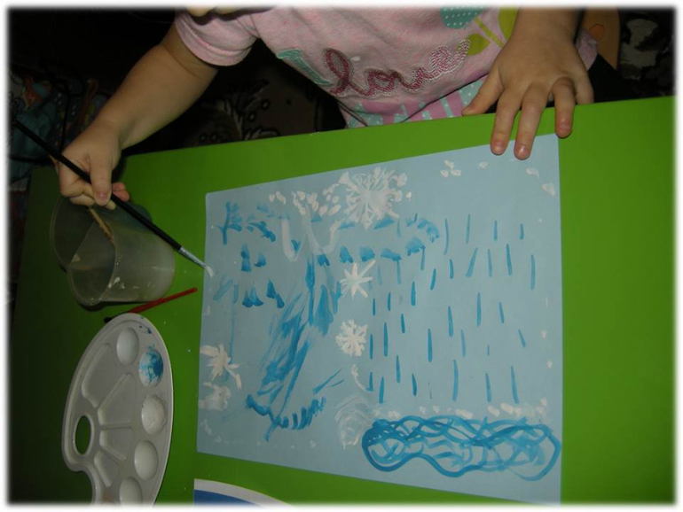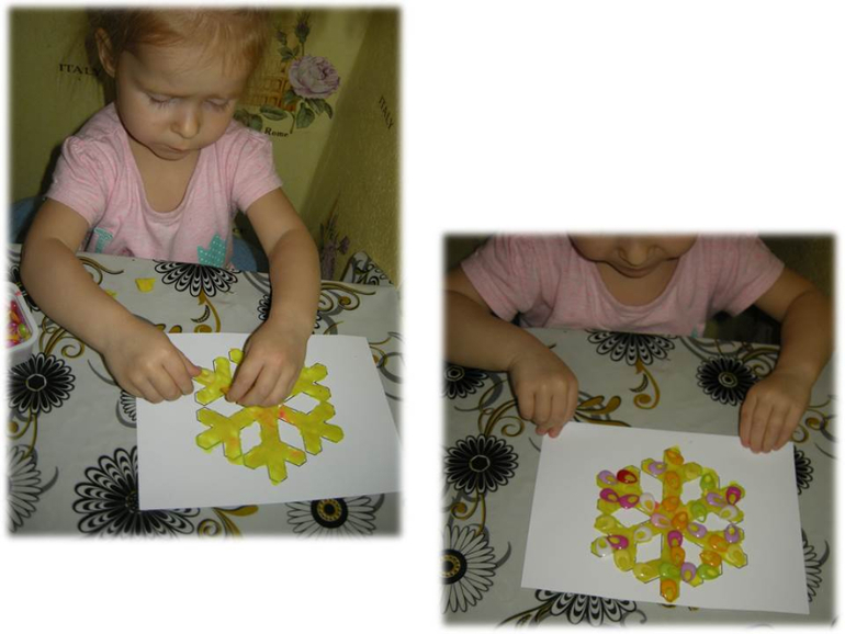Потом принялись играть со снежинкой, (у нас сегодня - Шичида, показываю, что по теме получилось) воображали себя снежинками