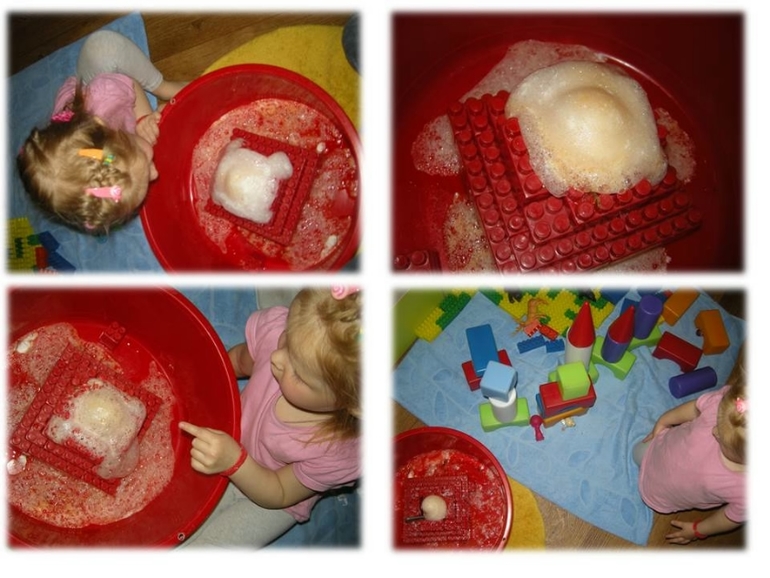 Посмотрели видео о вулканах, давала ответы на вопросы, и провели наш опыт) Вике очень понравилось, давай еще и еще, у нее возник вопрос только, А ГДЕ ОГОНЬ) Поначалу лава была оранжевая но к концу уже совсем белая)) принялись строить город (правда получился на воде)