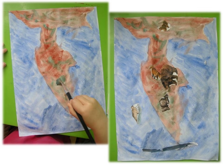 Сначала посмотрели карту, обговорили суша/вода, я показала где находится Камчатка и сосредоточила внимание на понятии "полуостров".