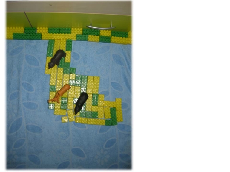 Мы разрисовали вместе, Вика принялась заселять сама, не дожидаясь пока высохнет, я вышла из комнаты по делам, а дочь прибежала через несколько минут уже с расселенной фауной)