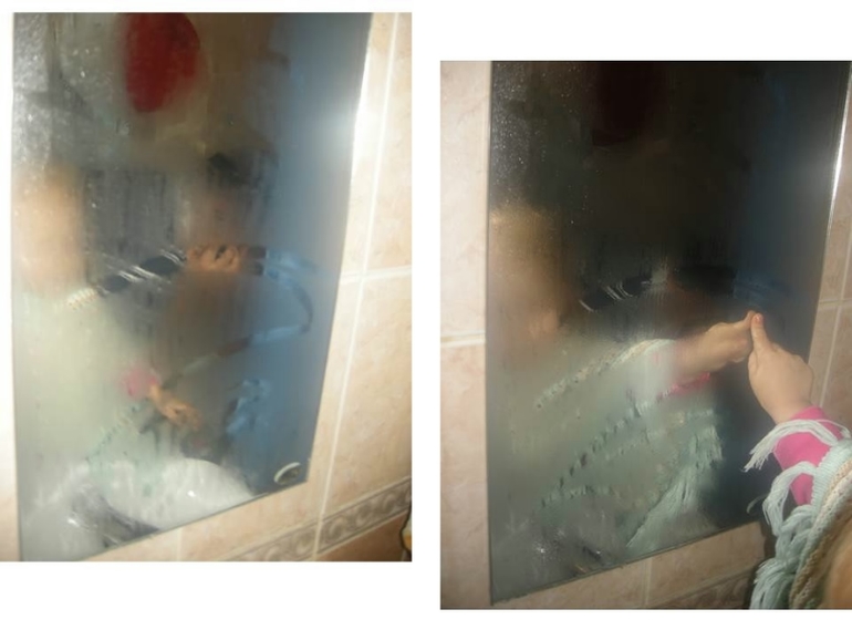 А также попробовали рисовать на запотевшем зеркале, я ранее этого не показывала Вике. У меня с детства какое то отрицание идет рисованию на запотевших окнах или зеркалах, наверное хорошо запрещали)) Но оказалось очень забавно и весело)