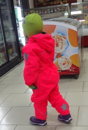 Очень классная, удобная и теплая куртка на синтетическом утеплителе (не мембрана) мягкая, колом не стоит. По сезону - еврозима. Размер 98, думаю +4-6 см в запасе есть (всё зависит от комплекции)