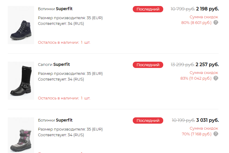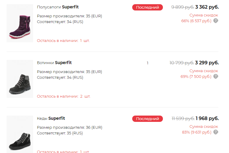 С оплатой при получении тоже красивая цена, всего рублей на 500 дороже. Есть и другие модели и пока еще есть размеры.. https://www.lamoda.ru/b/1519/brand-superfit/
