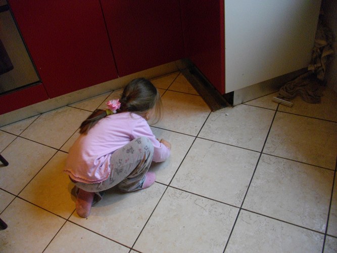 Время 7 утра, на улице дождь, а мое солнышко проснулось - и в доме весна! Веселье, улыбки, смех, энергия бурлит))) Вот засняла эпизод: охота на беременную кошку, которая пытается спрятаться под кухонным шкафом)))))) Смотрим: