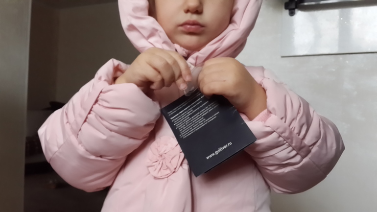 Спереди потайные кармашки на молнии. Воротник-стойка трикотажный, молния с защитой подбородка. Ветрозащитная планка на кнопках, в рукавах трикотажные манжеты. Водоотталкивающая пропитка. Утеплитель холофайбер. Отделка "розочками" по планке и капюшону.