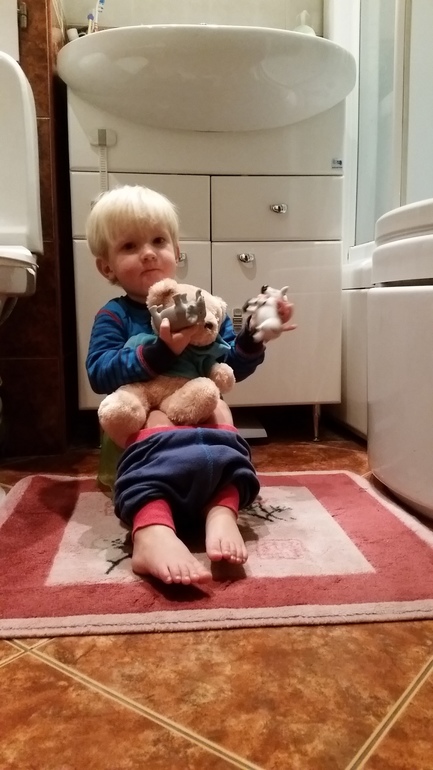 Укладываю спать. Надо сказать, что укладывание -целый подвиг, что на дневной сон, что на ночной. Теперь-по часу с ним приходится торчать. И с ритуалами отхода ко сну все, как надо, и активности-хоть отбавляй, но как спать: то на ручки, то в кроватку, потом опять надо на ручки. Перед этим-дайте всех зверей, потом попить, потом-пописать, потом выбиваются 2 рейки из кроватки, и Макс пытается вылезать