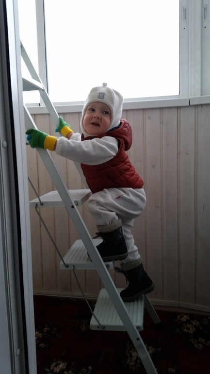А этл Максим гуляет на балконе. Рано встал, собрались гулять-закапризничал, потом решили погулять его на балконе, думали, умотается...ничего подобного: на улицу нас вытащил) придумали там классную игру: раскатывали лед на хоккейной коробке) хоть бегал: то по льду, то по колено в снегу) а то встанет и стоит, а мороз-то стлять не велит))