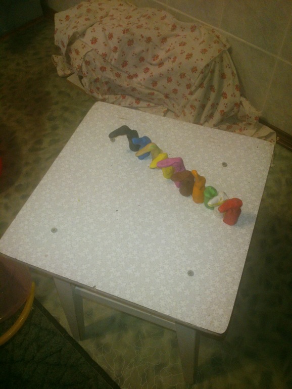 Это мой папа(дедушка) слепил ей 10...Кого бы вы думали???Это Гены,в смысле крокодилы.Маня видит 100% сходство, осталась довольна))Я ржала)))))