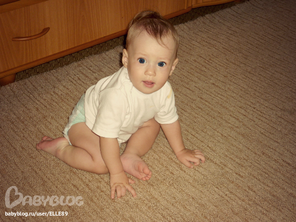 Мы ползаем с 4 месяцев,ходим вдоль стеночки,и держась за что-то,а вот сами без опоры пока идти ленимся))))но я и не тороплю,всему свое время)Говорим мама папа баба ням ням нельзя и еще некоторые слова повторяем,но не четко.рост 74 см вес 7800.у нас 6 зубов
