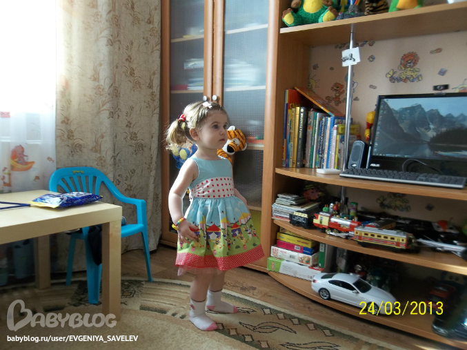 на данный момент наш рост 79, вес 10300.Вчера счходили на День Варенья к брательнику двоюродному,нарядили нашу мадам, к слову сказать, в тоже платье что покупалось ей на годик, отлично сидит, совсем не мало)))