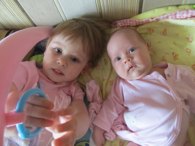 Я еще пока не могу сказать, что с двумя детьми легче, чем с одним. Но однозначно веселее. И в те дни, когда Анютка в саду или у бабушки, нам без нее скучно) А когда Аня приходит домой, она сразу спрашивает, где Оля.