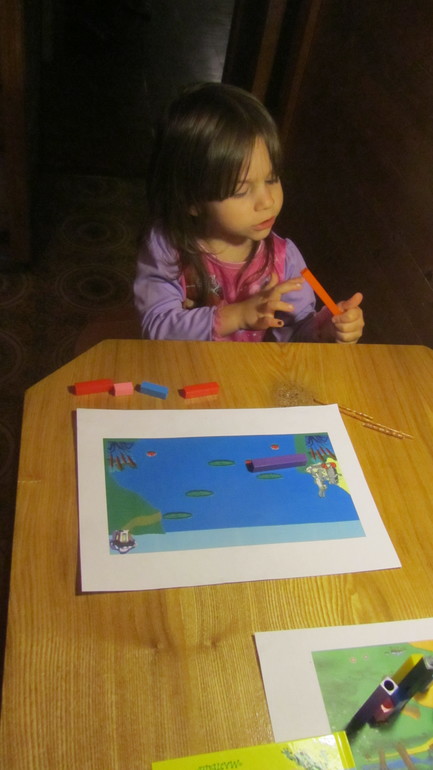 Затем, я предложила ей вытянуть самый длинный отрезок, София вытянула и получила подарочек - счетные палочку Кюинзера, купленные специально для этого ТЗ.