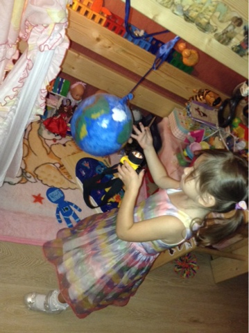 Модель нашей планеты мы с Софией изготовили еще в прошлом году в технике папье-маше.