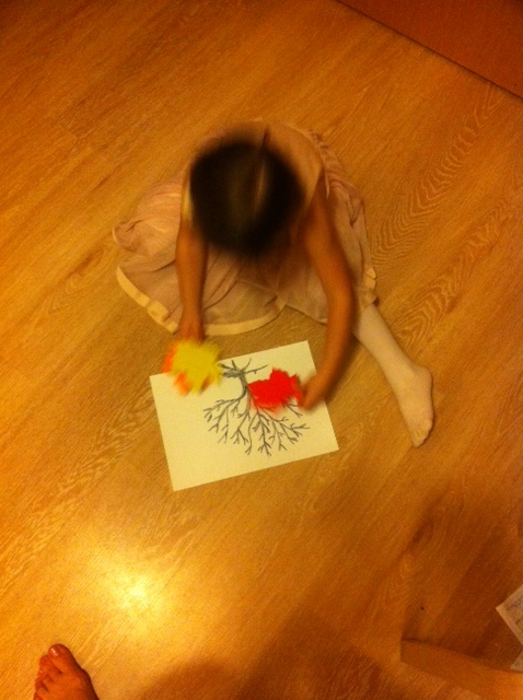 Первое задания - чудесная песенка про 3 кленовых листочка. К моему большому удивлению София не противилась, но и особо не принимала участие, кроме того, что отняла у меня все листочки. Мне так понравилась печенка, что я весь вечер ее пела. Включала видео, под конец, даже София присоединилась, смотрела видео (но листики не отдала). А потом даже что-то напевала сама.
