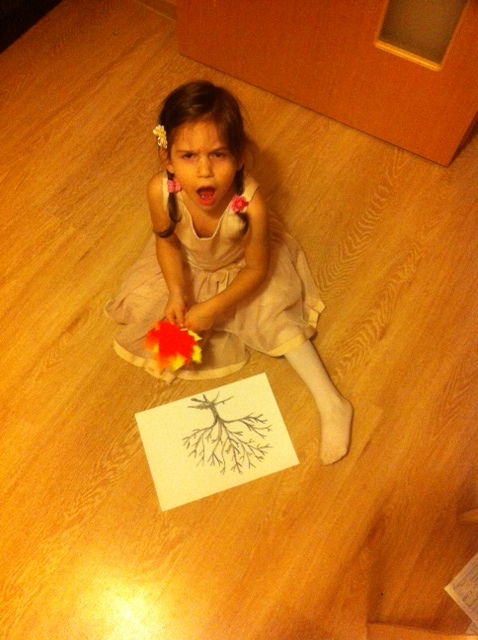 На следующий день у Софии видно не было настроя на английский, поэтому песня про 5 золотых осенних листочков не пошла.