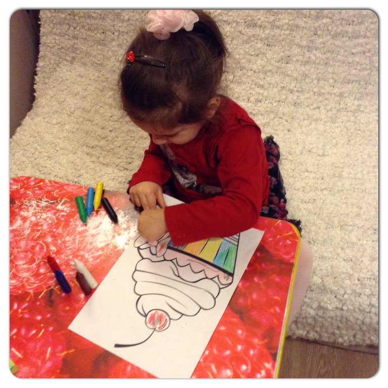 На балу нас угощали вкусными пирожными. Мы раскрасили кекс и играли с карточками в игры на мнгновенную память. Делали это впервые. София сразу поняла, что я от нее хочу, но не всегда указывала верную карточку. Это отличная игра! Обязательно продолжим эти занятия.